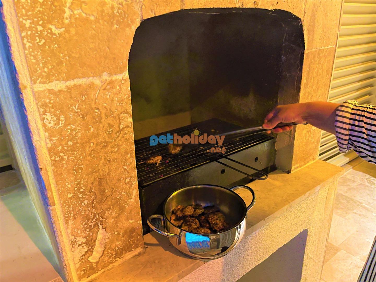 Mutfak  içerisinde buzdolabı, bulaşık makinası, çamaşır makinesi ,fırın, 4 lü ocak, elektrikli su ısıtıcı (kettle), çay makinesi , kahve makinesi ,yemek takımı, kaşık ve çatal takımı, bardak takımı, tencere ve tava takımı, 6 kişilik yemek masası ve sandalyeler bulunmaktadır. Havuz terasına çıkış vardır.