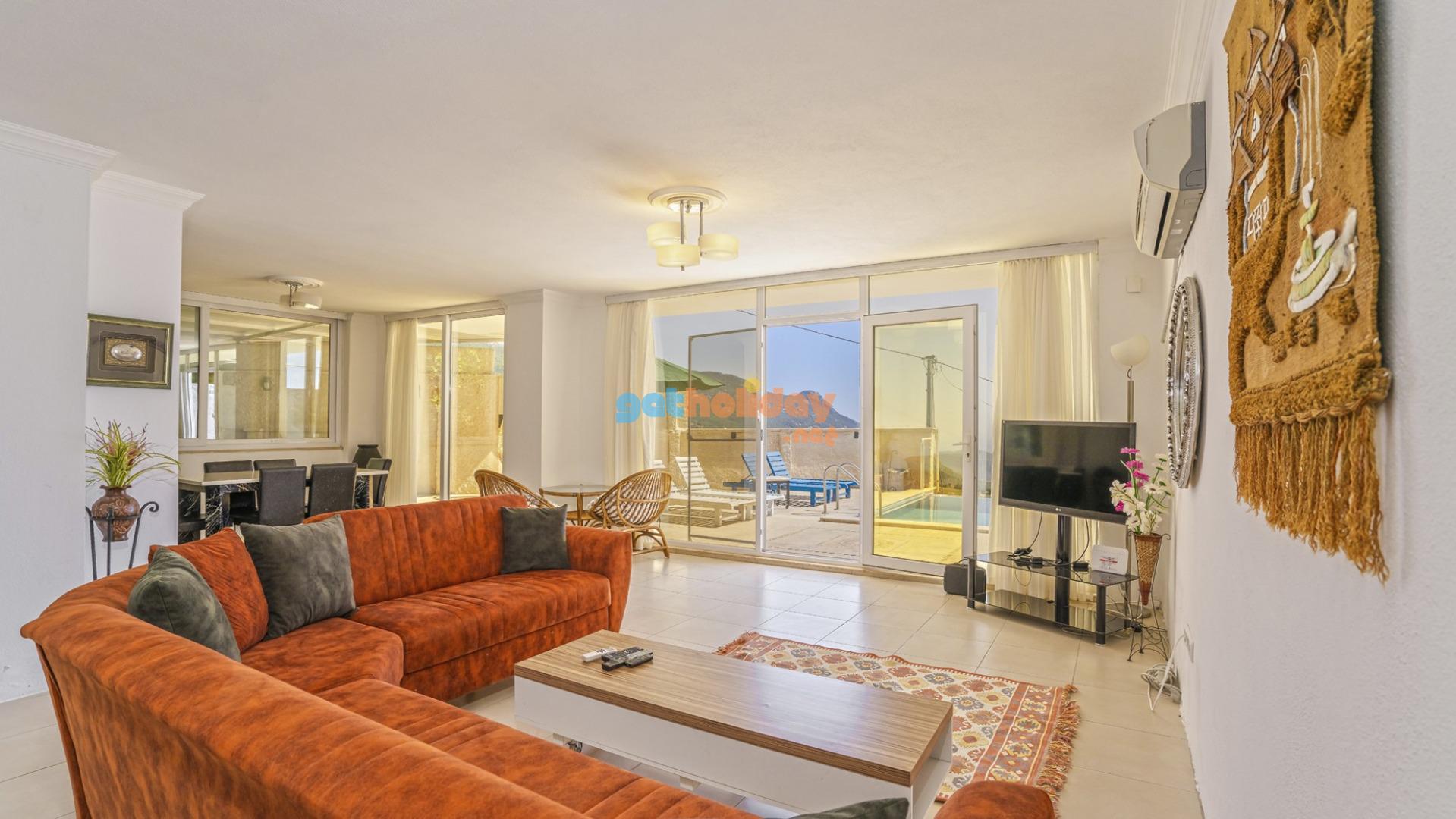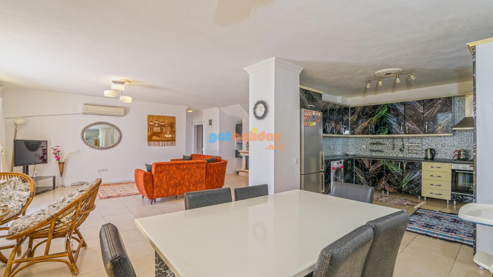 Salon : Salonumuzda oturma grubu, klima, LCD TV, sehpa, uydu alıcı bulunmaktadır. Havuz terasına çıkış yapılabilmektedir.