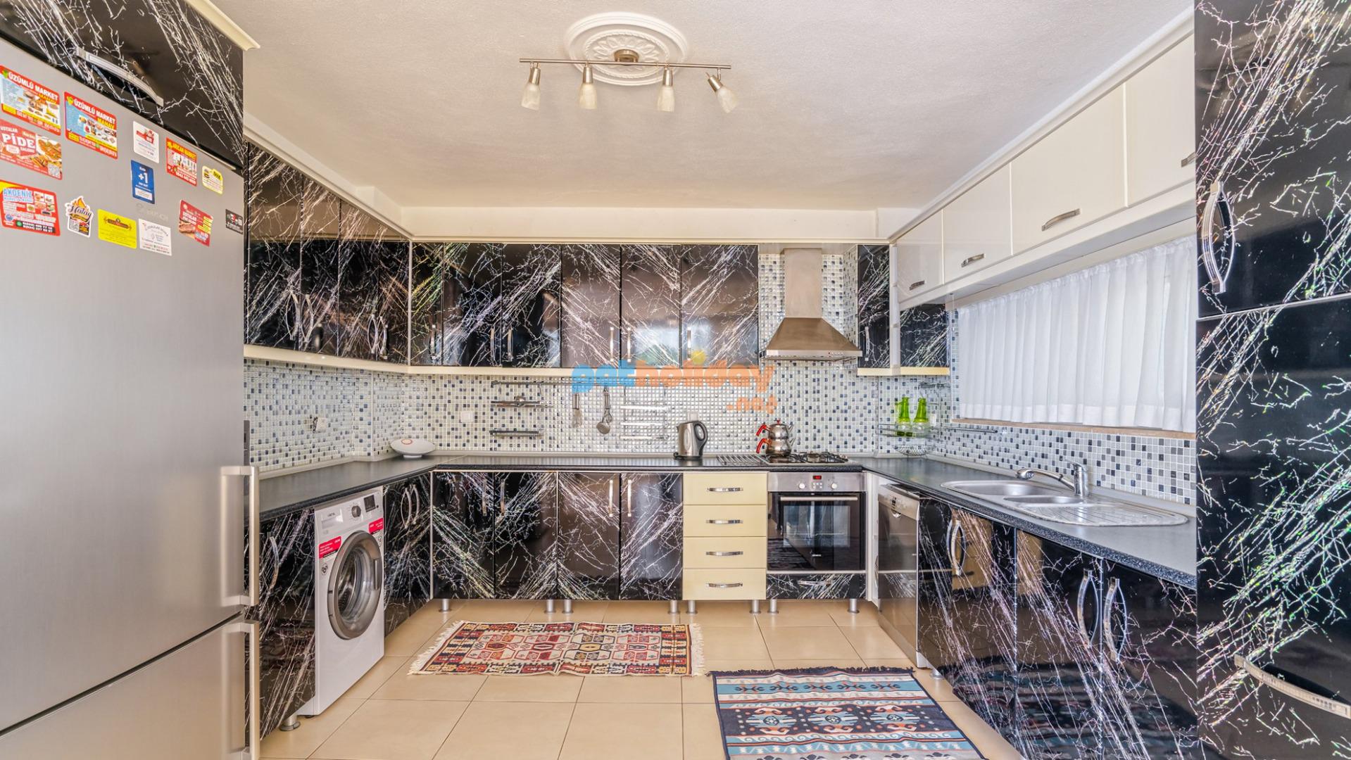 Mutfak : Modern Amerikan mutfakta buzdolabı, bulaşık makinası,fırın,4'lü ocak, mikrodalga fırın, kettle, 8 kişilik yemek masası, yemek takımları, çatal ve bıçak takımları, tencere ve tava takımları, bardaklar bulunmaktadır