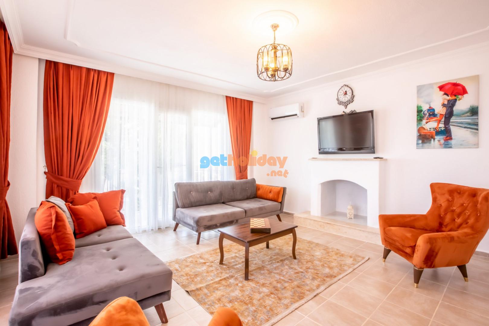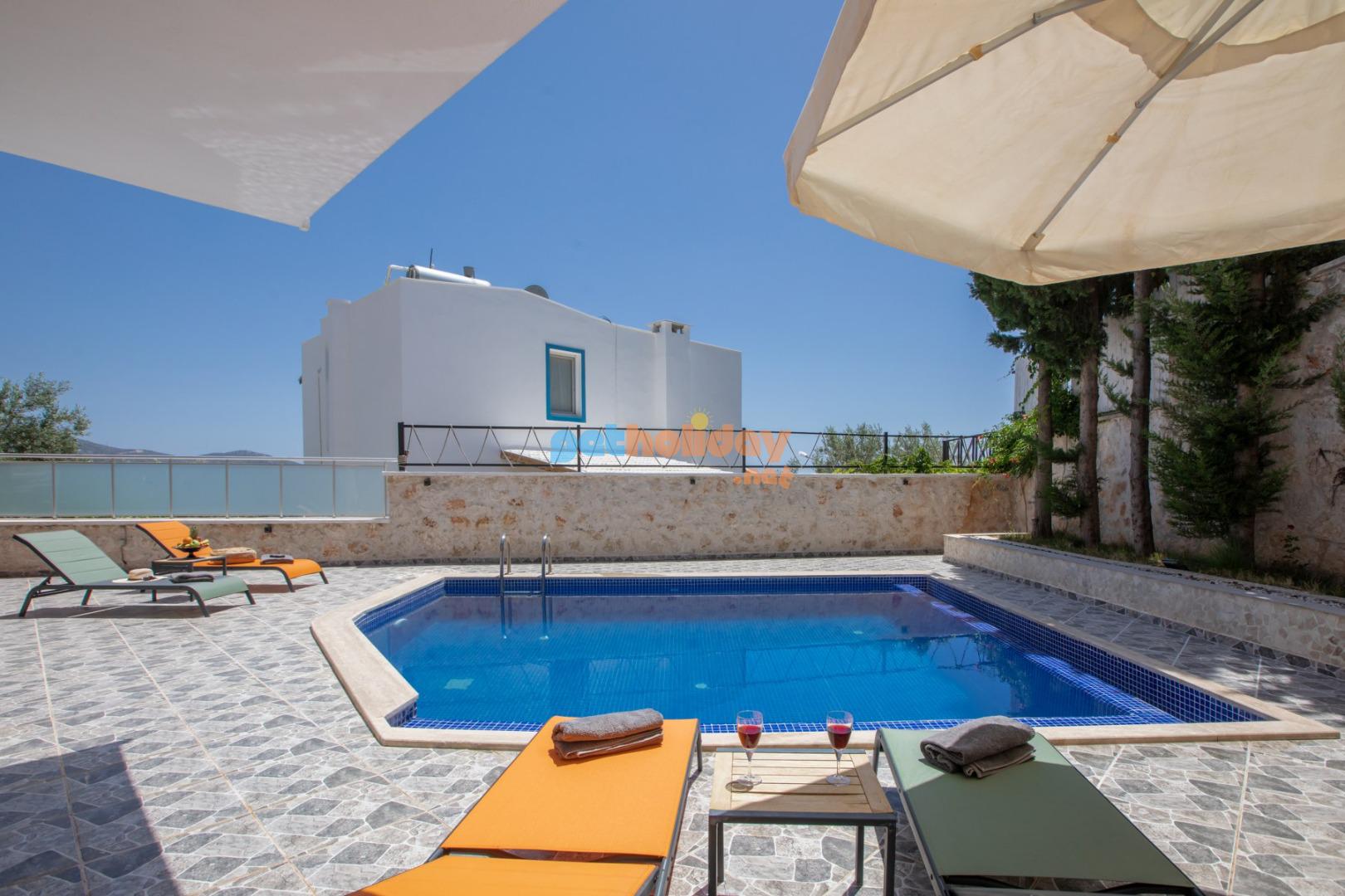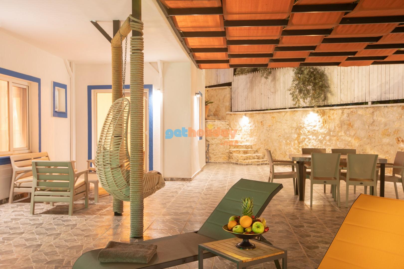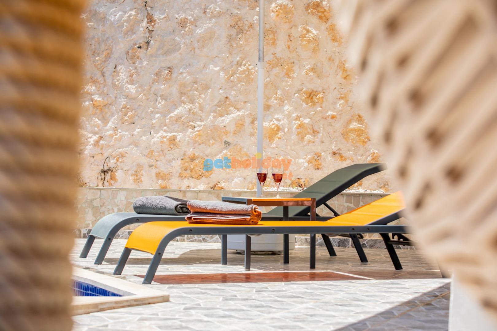 Kalkan Merkeze yürüyüş mesafesinde jakuzili 3 yatak odalı 6 kişilik kiralık villa