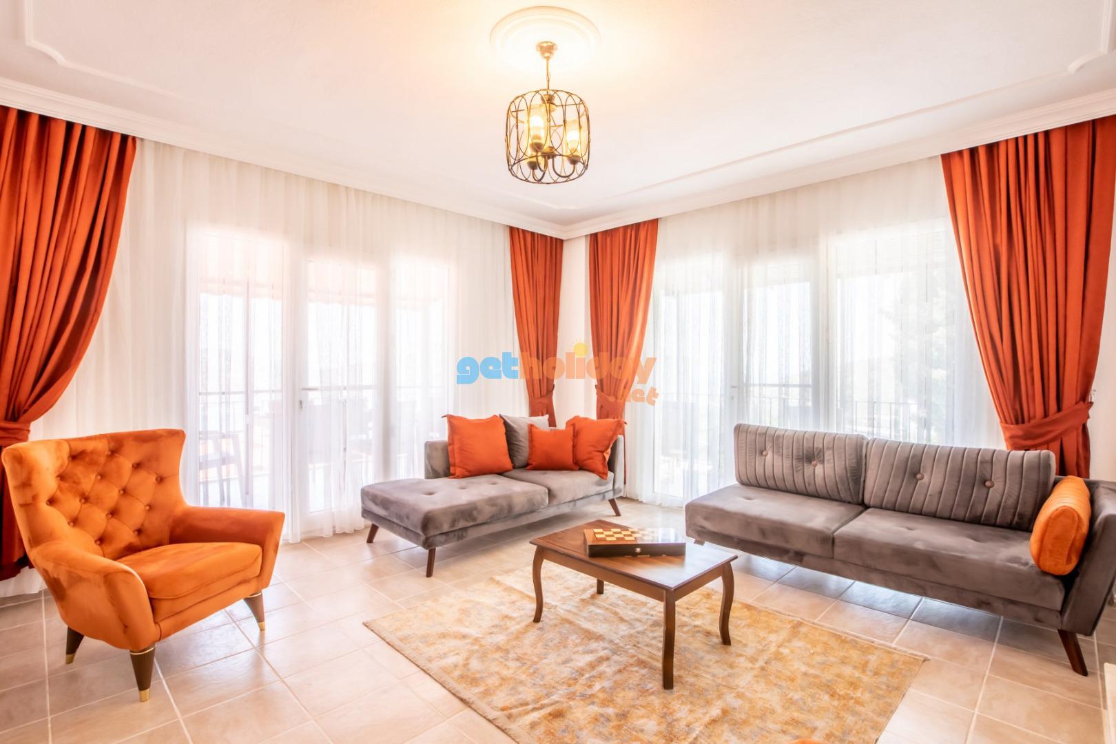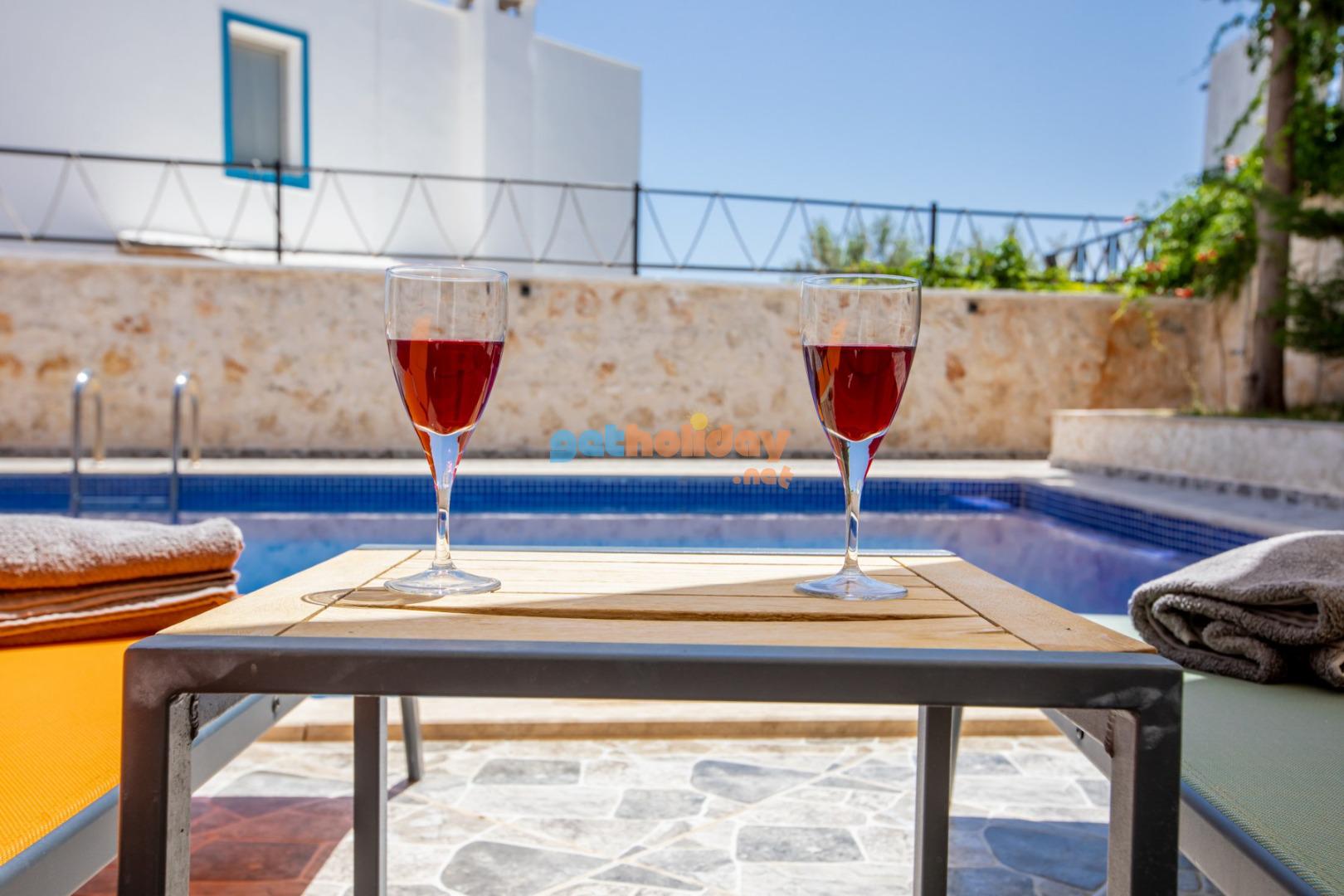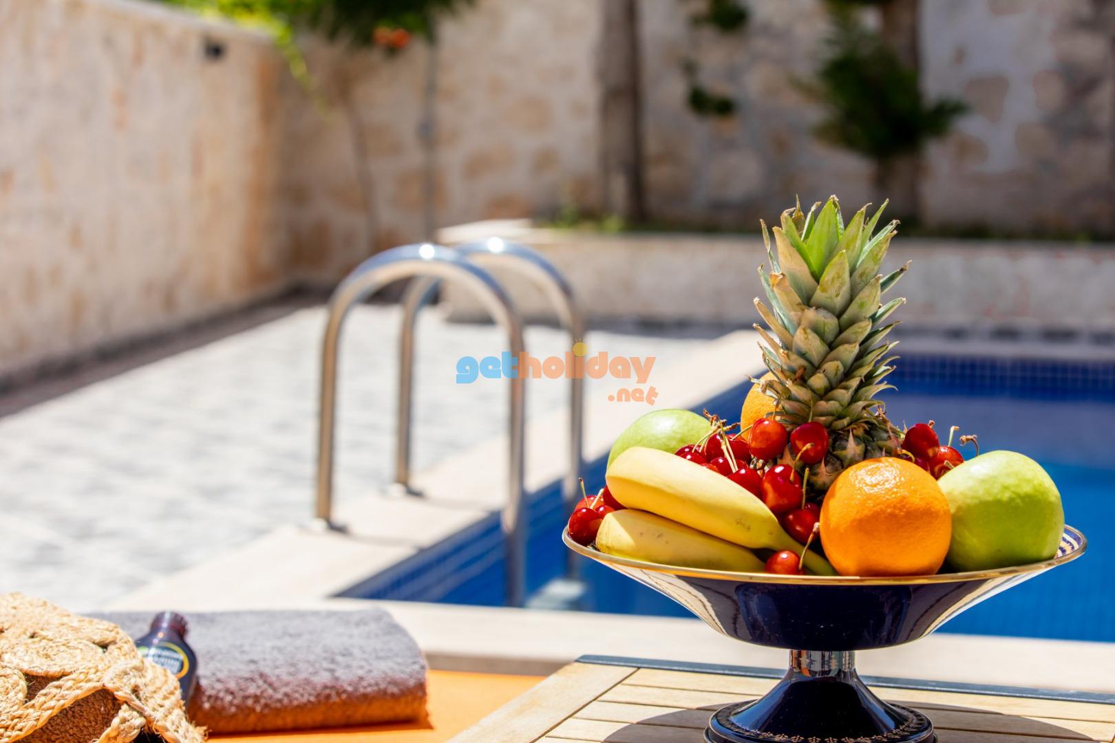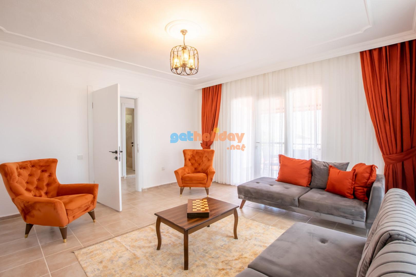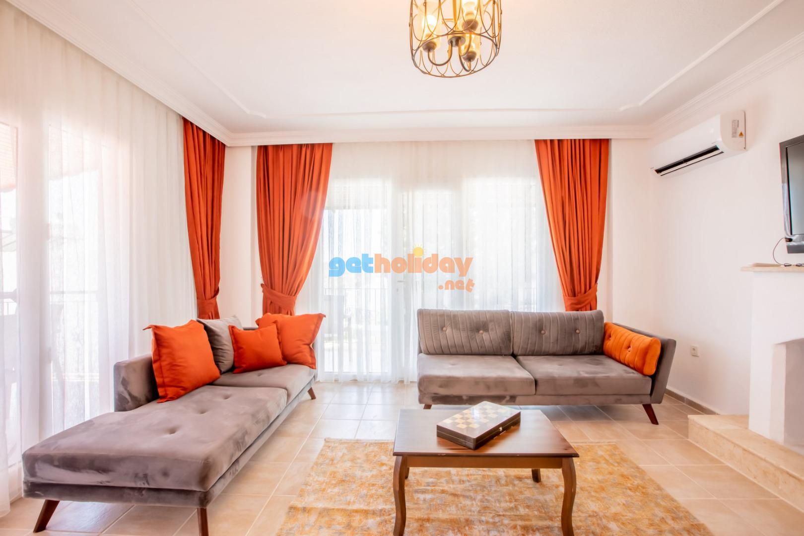 Kalkan Merkeze yürüyüş mesafesinde jakuzili 3 yatak odalı 6 kişilik kiralık villa