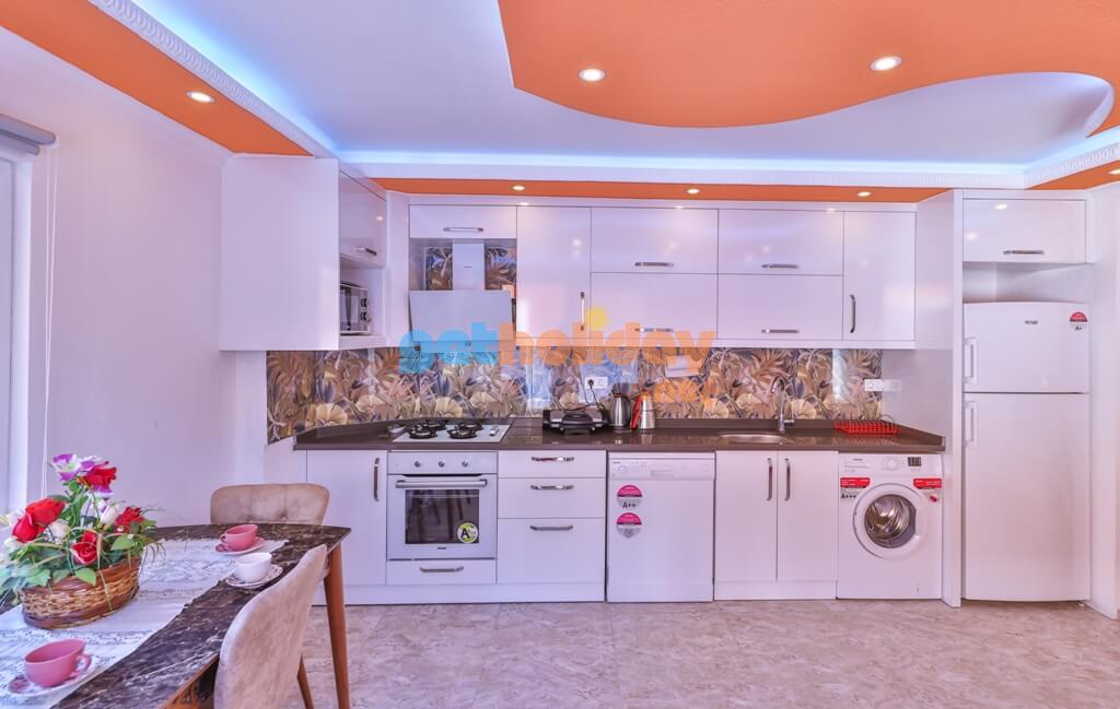 Mutfak : Ferah ve şık dizayn edilmiş Amerikan Mutfak , Buzdolabı , Bulaşık Makinesi , Çamaşır Makinesi , Fırın , Ocak , Mikrodalga Fırın , Elektrikli Su Isıtıcısı , Tost Makinesi , Tava Tencere vb. Mutfak Ekipmanları