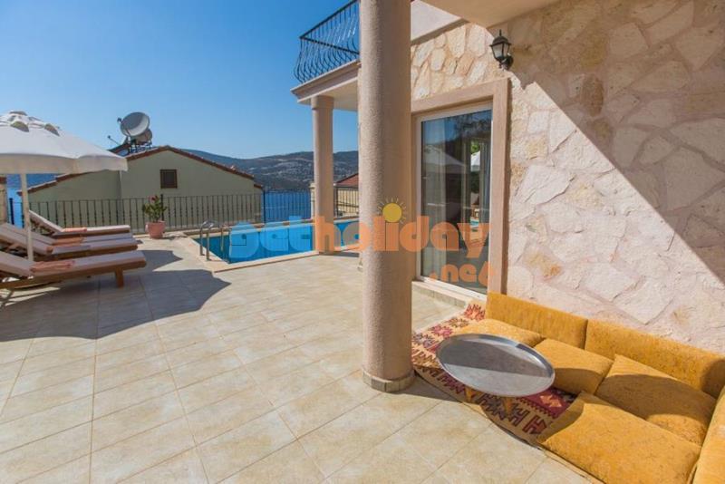 Kuş bakışı olarak Kalkan koyu ve şehri manzarasına hakim,geniş aile ve arkadaş gruplarına hitap eden kiralık yazlık villa seçeneklerimizdendir.4 en-suit yatak odası ile, 8 kişiye kadar konuklarına rahat bir konaklama imkanı sağlamaktadır.Villamız toplamda 3 kata yayılmış olup triplekstir.Zemin katta Amerikan mutfak&salon ve iki suit yatak odası,birinci katta deniz manzaralı bir suit yatak odası,çatı katında deniz manzaralı bir suit yatak odası yer almaktadır.Geniş havuz terası,konforu ve mazarası ile konuklarına huzur dolu tatilin kapılarını aralamaktadır...
