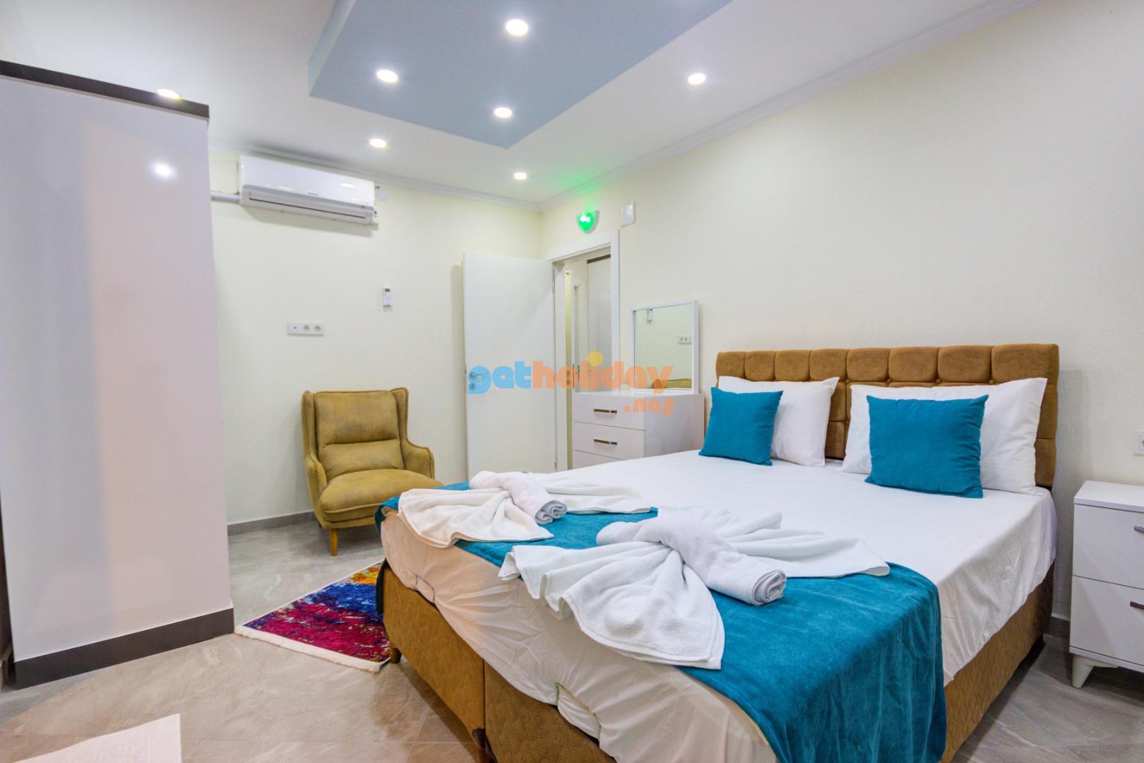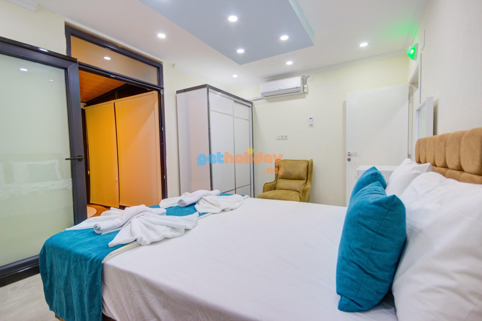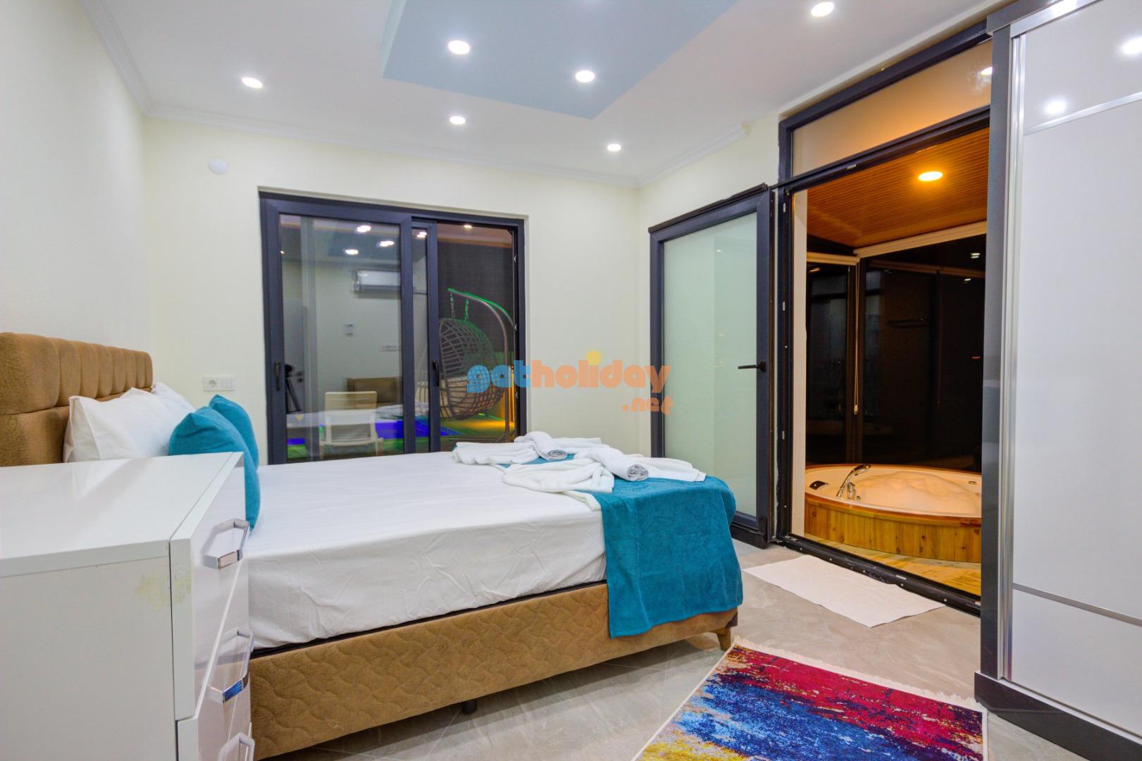 Antalya Kaş Kalkan Sarıbelen mevkiinde konumlanan Villa Yeşilvadi, 2 yatak odalı 4 kişilik muhafazakar villamızın ebeveyn odasında jakuzi mevcuttur. Villamızın etrafı korunaklı olup, dışarıdan gözükmemektedir. Muhafazakar tatil için idealdir.